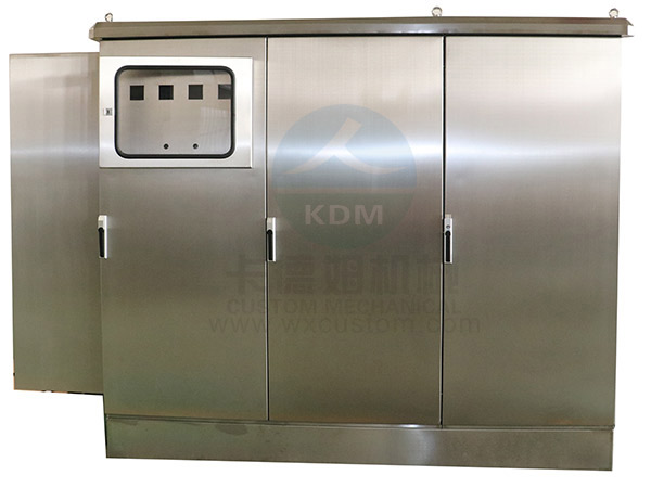 不銹鋼防雨柜(大型):是一款既要滿(mǎn)足客戶(hù)柜內(nèi)空間最大化,又要保證戶(hù)外防水的一種柜型。材質(zhì)一般以不銹鋼為主,防雨頂?shù)脑O(shè)計(jì)既要美觀,又要保證與柜體間的防水性能。玻璃視窗的防水防塵性能也相當(dāng)重要。